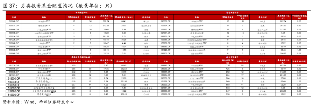 3.4.5 另类投资基金:增持黄金为主,其次为有色、白银